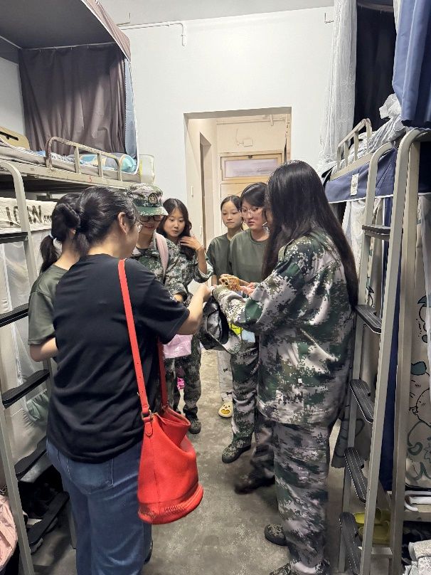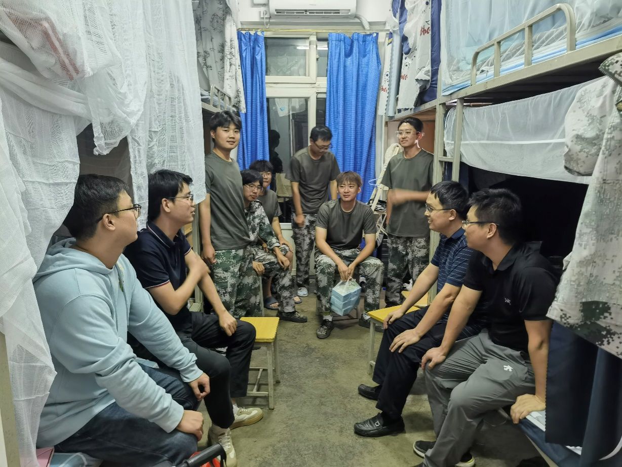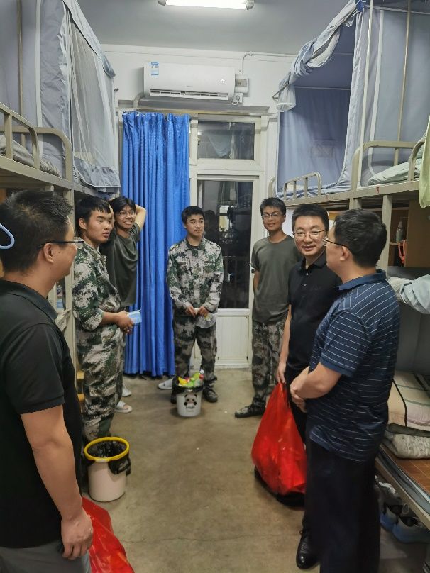 走访过程中,老师们为每位同学送上了精心准备的小礼品,让离乡求学的学子感受到了家一般的温暖。老师们与同学们围坐一起,亲切交流,话题涵盖了军训期间的训练感受、入校后的生活适应情况、就业深造政策、与新同学的相处之道以及即将到来的中秋国庆假期安排。老师们耐心倾听同学们的分享与困惑,并给出了细致的建议。交流尾声,老师们再三嘱咐大家,在接下来的军训和假期中,务必将人身安全与财产安全放在首位,度过一个充实而平安的假期。