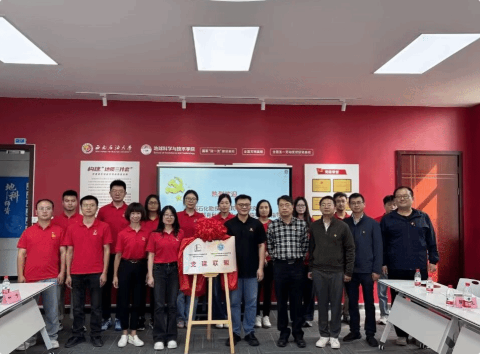 我院油气地质教研室党支部积极探索新时代基层党支部建设,在学院党委领导指导下、勘探分公司研究院党委领导大力支持下,油气地质教研室党支部与中石化勘探分公司研究院海相页岩气党支部进行多次深入交流,最终确立开展共建合作、建立党建联盟,并于2025年10月13日在明辨楼A312隆重举行了党建联盟挂牌仪式暨学术交流会。