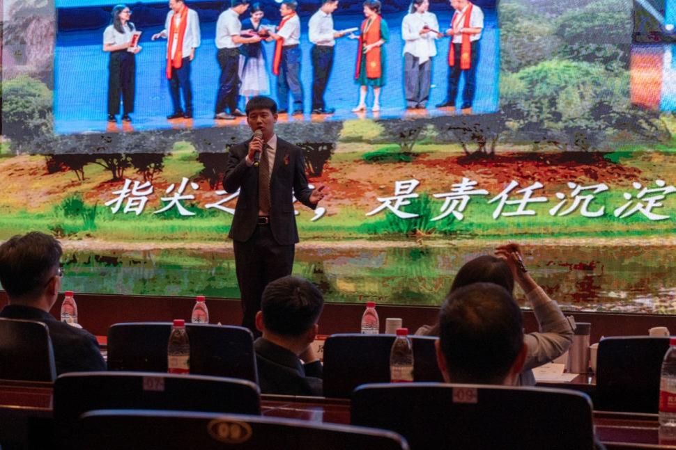 10月27日下午,第二届“梦溪青春心向党”师生党员演讲比赛决赛(教职工组)在图书馆报告厅举行,万有维老师以《“基石”为证:一场青蓝相继的深情对话》为题演讲。他以庄严的“基石”传承仪式为引,分享从张廷山教授手中接过源自南充校区“基石”岩样、承接使命的故事,这块岩石象征老一辈教育者扎根讲台、徒步勘探,为行业与学校筑牢根基。对万老师而言,“基石”精神是求学时“格物致知”理念的延续,更是未来科研教学的行动指南。他誓言以其攻克“卡脖子”难题,把论文写在祖国大地;同时讲述“基石”故事,让“为祖国加油,为民族争气”精神薪火相传,愿与青年共成新时代“基石”,在科研教学中坚守,于中国式现代化征程共写青春答卷。