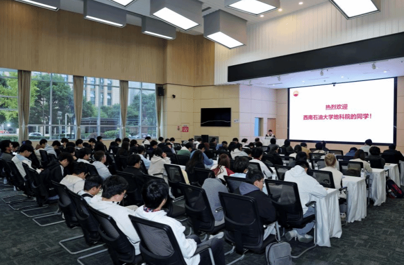 在交流座谈环节,勘研院相关人员介绍了院七十余年的发展历程、特色技术体系、重大勘探成果及人才引进政策。随后,院三名地科院校友技术骨干分享了从求学到科研攻关的成长经历,并以“把论文写在油气田上”鼓励学弟学妹夯实基础、早日投身于能源报国事业。互动环节中,双方围绕“地质类本科生能力储备”“油气行业发展趋势”等内容展开热烈讨论。