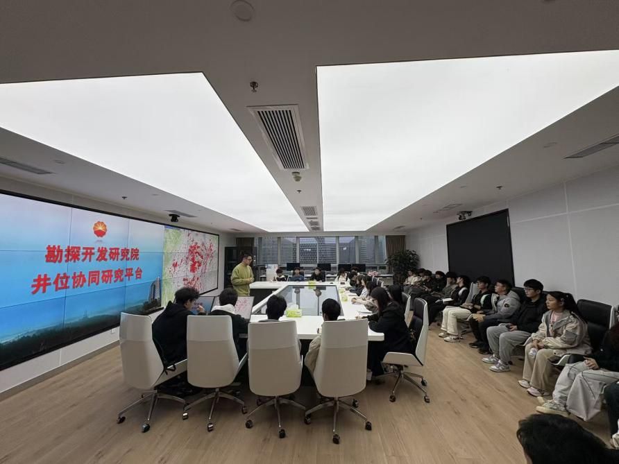 11月16日,同学们首站来到西南油气田勘探开发研究院,依次走进分析实验中心、井位决策大厅与党建文化阵地,在技术人员的讲解中,亲身感受油气勘探的科技脉搏。从高精度岩心CT扫描仪、激光共聚焦显微镜等先进设备,到“巾帼创新工作室”在储层表征方面的创新成果;从三维地震数据支撑的智能化决策场景,到“把论文写在油气田上”的川油精神传承——一系列参观与交流,让同学们深刻体会到理论与实践结合、科技与人文交融的勘探科研实景。现场互动踊跃,多名学生表示,此行不仅“看到了技术的前沿”,更“读懂了石油人的初心”,进一步坚定了能源报国的专业信念。