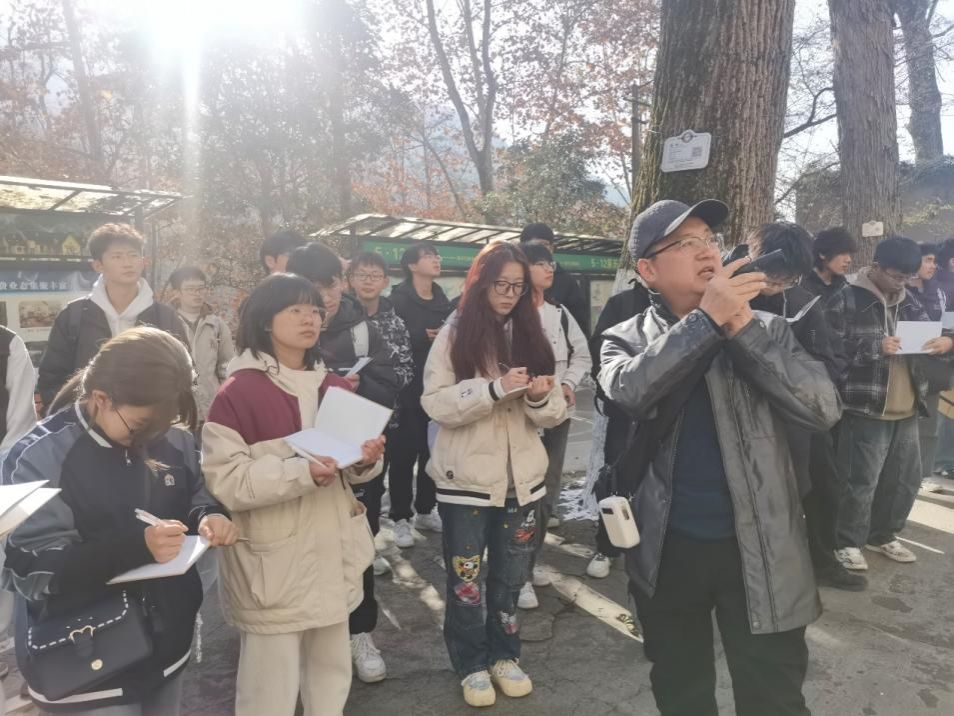12月7日,同学们赴彭州市白鹿镇开展野外地质现象认知实习,在真实的地质景观中上了一堂生动而深刻的地球科学课。余养里与周小军老师结合现场典型地貌,为同学们系统讲解了河流沉积作用与地震动力学机制,将课堂理论延伸至山川之间。在白鹿中学遗址,面对断裂带上整体抬升约2.5米的教学楼废墟,同学们不仅直观认识到地壳运动的强大力量,更深刻体会到地质研究在防灾减灾、保护人民生命财产安全中的重大责任。这次实地教学,进一步激发了大家探索地球奥秘、夯实专业本领的信念,坚定了以地质知识服务国家建设、守护百姓安宁的初心与使命。
