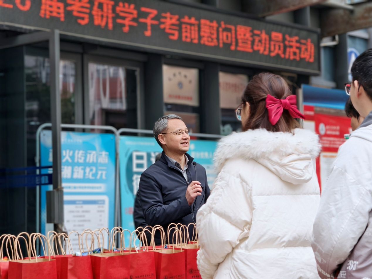 学校党委常委、组织部部长、地科院党委书记易联树为考研学子加油鼓劲。他充分肯定同学们长期以来的拼搏付出,叮嘱大家把握考前最后十天的宝贵时间,调整身心状态,以饱满的精神面貌和最佳的应考状态迎接考验。“考研既是知识储备的全面检验,更是心理素质的一场较量。”并勉励广大学生“在考场上‘提笔从容自信,合笔如愿以偿’,借马年将至的吉庆兆头,祝每一位地科学子马到成功、一战成硕!”