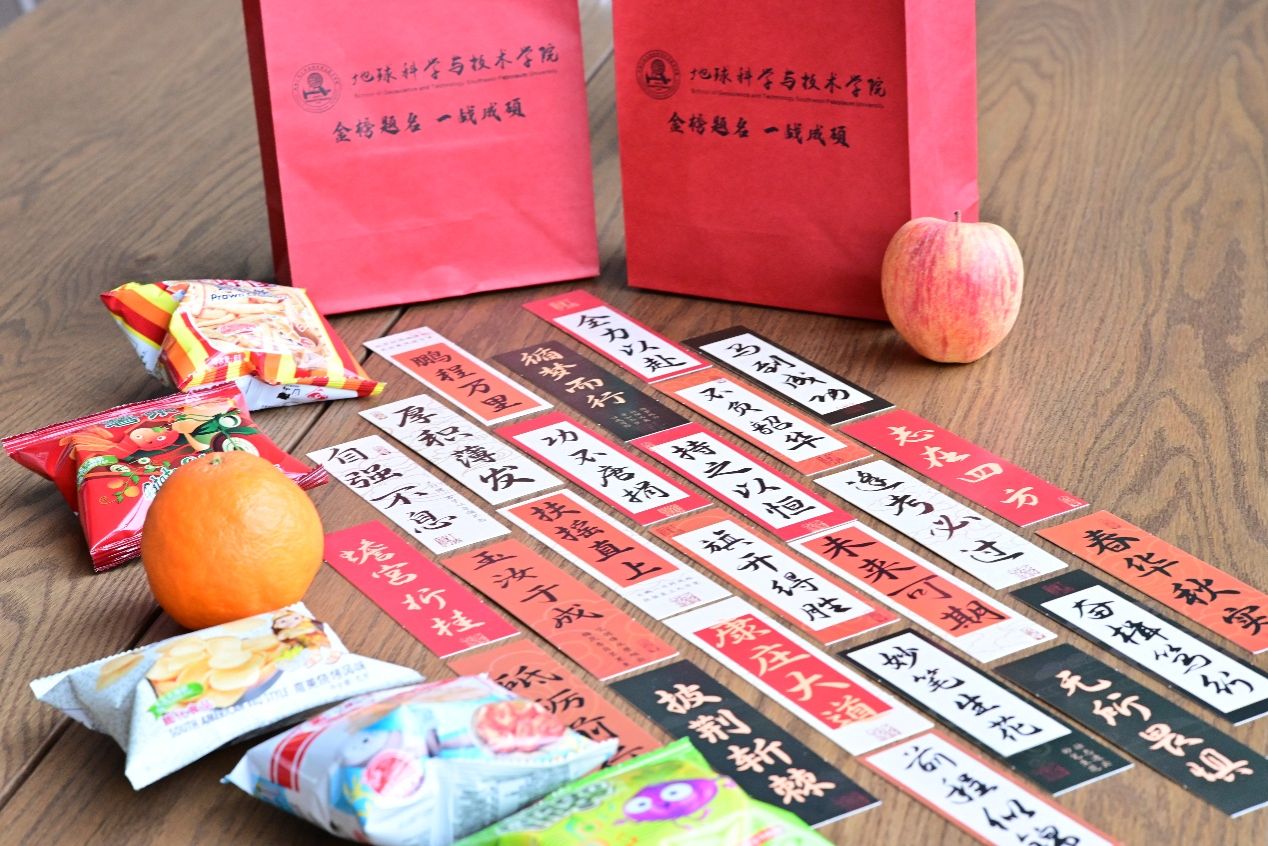 地科院为考研学子精心准备了寓意美好的“上岸助力礼包”:红彤彤的苹果,是学院对学子考研之路平平安安、考场发挥稳定无扰的诚挚祝愿;饱满多汁的橙子,取“橙”与“成”的谐音,寄托着“心想事成、圆梦目标院校”的殷切期盼;三包上好佳零食不仅能为学子随时补充能量、舒缓复习压力,更暗藏“状态佳、发挥佳、结果佳”的三“佳”临门祝福;香甜的棒棒糖寓意着“熬过备考艰辛,终得甜蜜结局”,愿学子们答题思路顺畅无阻;而定制书签则将陪伴学子冲刺备考全程,书签上的寄语承载着学院的厚重期望,鼓励大家“执笔为剑、一举登科、成功上岸”。