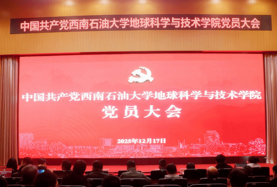 2025 年 12 月 17 日上午,地球科学与技术学院党委在图书馆学术报告厅召开党员大会,选举产生学院出席学校第三次党员代表大会代表。大会由西南石油大学党委常委、组织部部长、地球科学与技术学院党委书记易联树主持。学院全体正式党员参加了大会。