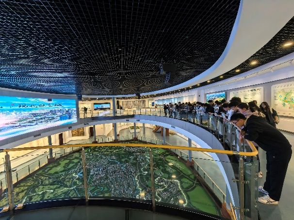 11月27日,实习师生首站前往新都区规划馆,了解地下工程在城市规划中的定位及其作用。在规划馆讲解员的引导下,同学们通过全景沙盘、动态投影等多种展示形式,观摩了新都区城市总体规划布局,了解了钟楼TOD、廖家湾TOD、地铁线路规划等地下空间开发利用的规划和故事。让同学们认识到地下工程在城市高质量发展的规划和建设中的重要性和作用,强化了对专业应用场景的认知。
