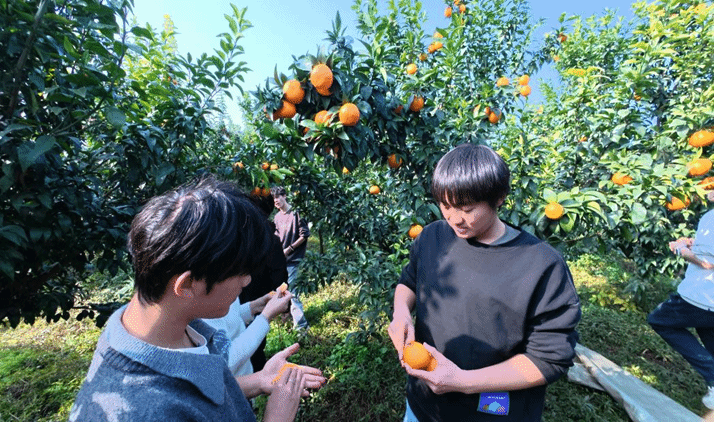 同学们采摘品尝柑橘