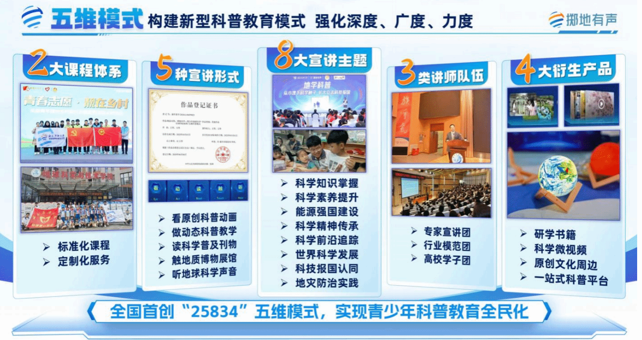 《深耕“大地课堂”:“掷地有声” 项目——以地球科学特色淬炼大中小学一体化思政育人体系》成功入选大中小学思想政治教育一体化建设工作案例,项目依托八年公益科普实践,创新“25834” 五维育人模式,打通学段衔接壁垒,构建地学特色贯通式育人体系,切实提升思政育人实效,先后荣获中国青年志愿服务大赛银奖、四川省高校志愿服务项目大赛金奖等 。