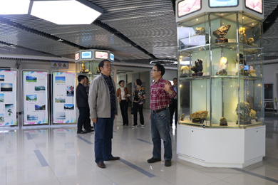 副院长王兴志向评审专家介绍地科院展厅情况