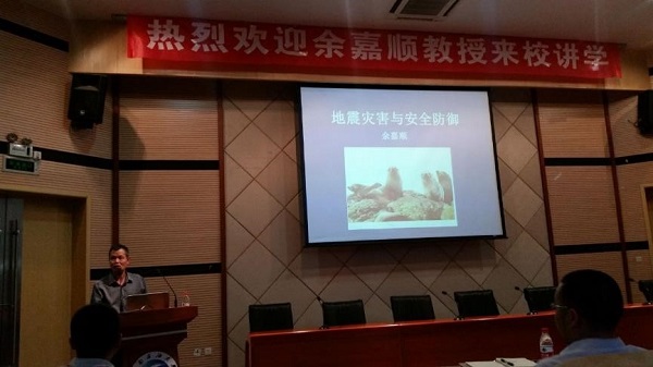 2016年5月17日晚上19:00,由来自成都理工大学的余嘉顺教授作了关于地震灾害与防御-汶川大地震,芦山大地震与Christchruch大地震科考工作的讲座,该讲座在思学楼A114举行。