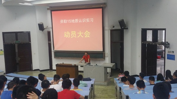 6月25日晚,资源勘查工程2015级在思学楼B110举行了暑期峨眉地质认识实习动员大会。王兴志副院长、实习指导教师范存辉席,15级资勘班主任张馨艺及资勘15级全体学生参加动员大会。