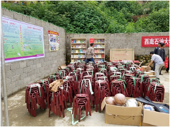 4日中午1:00从学校出发,晚上8:00到西昌。5日早上7点出发,中午1:00到一个乡上吃午饭,然后直奔新寨子村,经过一天的长途跋涉,下午2:00到达海拔2000多米的新寨子村。到达后立即开展工作,随学校调研组先后考察了学校帮扶实施的村小学改建、村党员活动室、村卫生室、村民板凳工程、“借猪还猪、借鸡还鸡”产业发展、核桃树栽种地等项目。参加学校为新寨子村捐赠仪式,学校捐赠儿童图书1000余册,养殖种植图书5箱,电脑、打印机各1台,板凳780个,乒乓球台等各类体育用品,以及学校部分教职工捐赠的书架、衣物等。