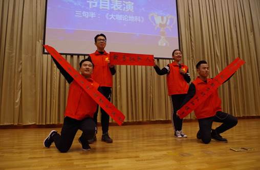 “启征程,气行天下造石大英才;忆峥嵘,油以载道铸地科俊秀。”地科院2016级的新生还带来了《大咖论地科》活泼生动的三句半表演。
