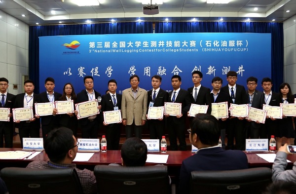 2017年4月22日至25日,由地科院测井教研室赵军和王亮为指导老师,李维、周雪、孙杨沙、李贤胜四名学生组成的参赛队伍在第三届全国大学生测井技能大赛(“石化油服杯”)中荣获全国二等奖。