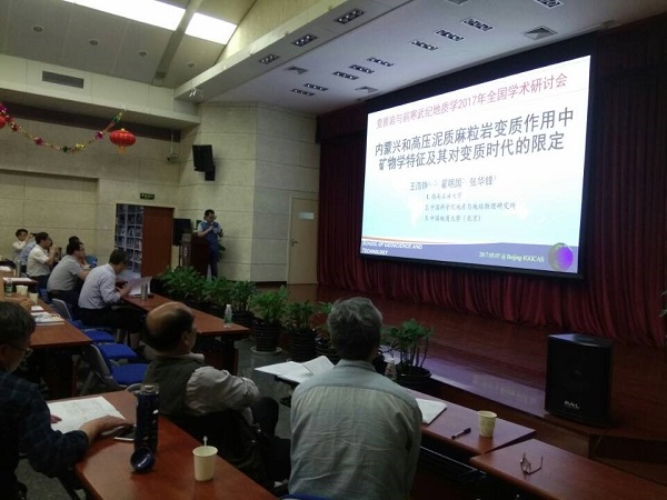 5月6日至7日,我院基础地质教研室青年教师王浩铮博士参加在京举办的变质岩与前寒武纪地质学2017年全国学术研讨会,并做题为《内蒙兴和高压泥质麻粒岩变质作用中矿物学特征及其对变质时代的限定》的学术报告。同时,王浩铮博士还阶段性地协助了会议承办方组织该会议的野外考察。