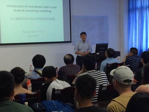 6月1日下午,我院地学专家讲坛第60期邀请到加拿大卡尔加里大学地球物理博士许川东教授做题为《岩石物理综述与各向异性的前沿问题》的学术报告,本次讲座在明辨楼B412举行,地科院尹成老师主持,地科院廖细明、杨巍、张固澜老师及全校相关学科领域师生参加了本次报告会。