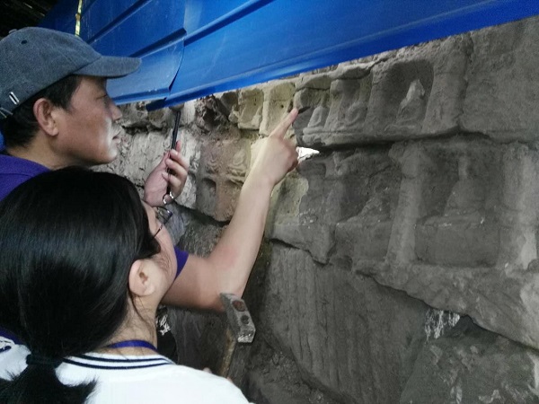 勘查飞来石残存佛像