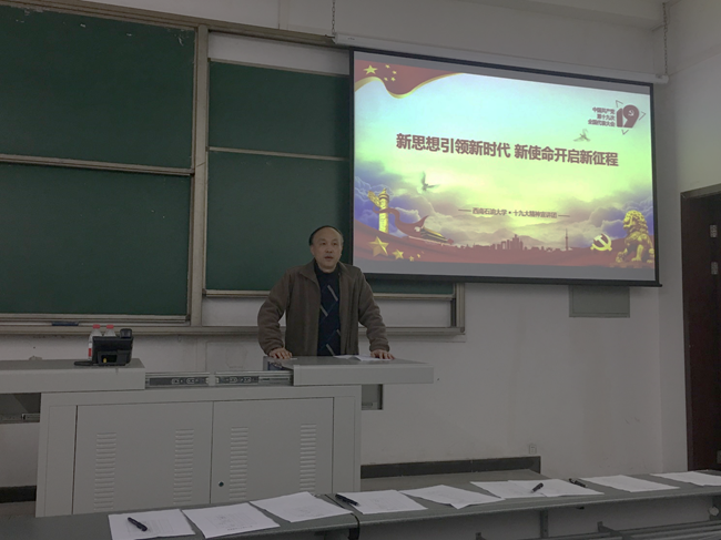 为了准确理解、深入学习贯彻党的十九大精神,11月17日地球科学与技术学院党委举行十九大精神宣讲会。我校十九大精神宣讲团成员、马克思主义学院毛泽东思想与中国特色社会主义理论体系教研室主任卢婷婷老师作宣讲报告。宣讲会由地科院党委书记朱江主持,全院教职工参加了此次宣讲会。
