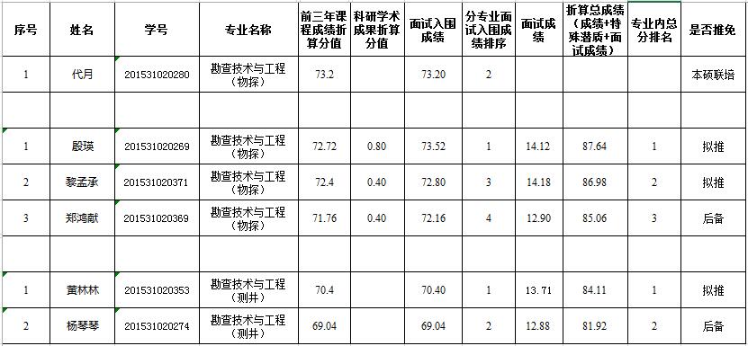 地科院2019届面试结果和拟推免名单-资源勘查工程专业