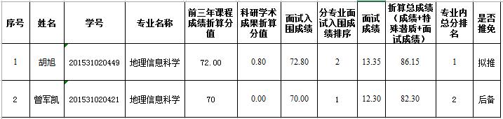 地科院2019届面试结果和拟推免名单-地理信息科学专业