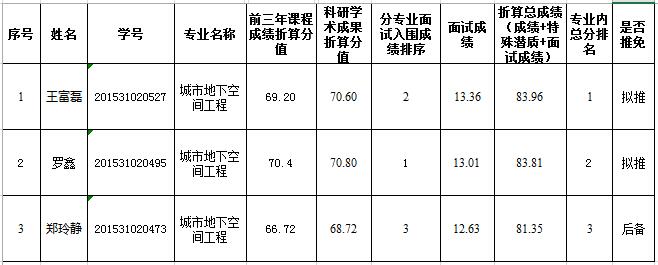 地科院2019届面试结果和拟推免名单-城市地下空间工程专业