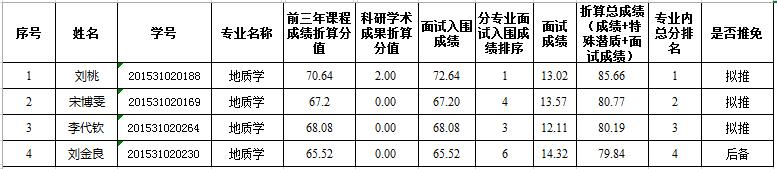 地科院2019届面试结果和拟推免名单-地质学专业