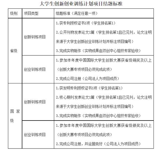 大学生创新创业训练计划项目结题标准