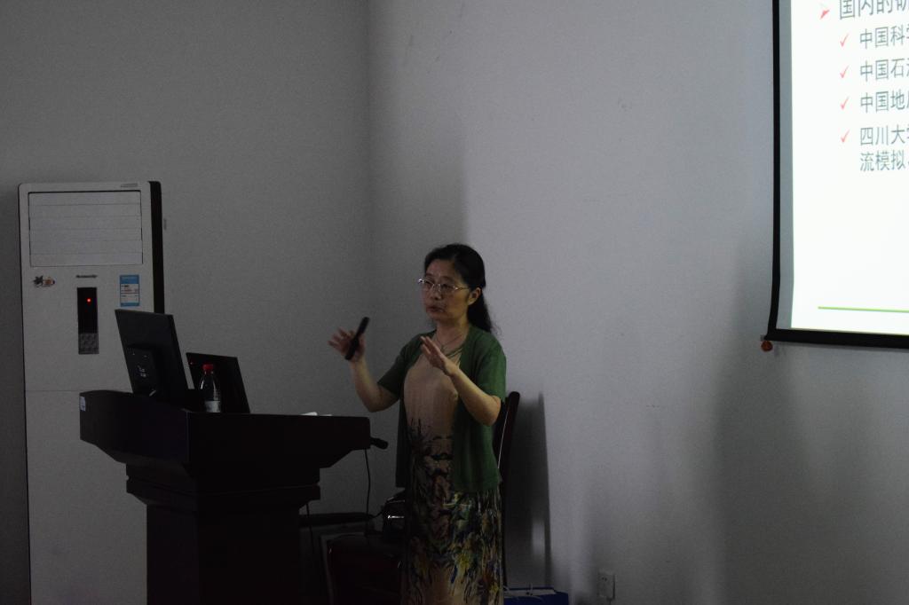 讲座的内容主要从数字岩心的概念、物理成像的三维图像、基于二维图像的三维重建、岩心三维图像处理和其他方面岩心数字化工作五个方面展开。数字岩心技术是近年兴起的岩心分析的有效方法,在常规砂岩和碳酸盐岩等岩心分析领域应用广泛,获得了极大的成功。基本原理是基于二维扫描电镜图像或三维CT 扫描图像,运用计算机图像处理技术,通过一定的算法完成数字岩心重构。数字岩心分为两个阶段,第一阶段是构建岩心三维数字结构,第二阶段是在三维结构上进行计算机模拟。滕教授讲解了计算机断层扫描技术(CT)和聚焦离子束扫描电镜技术(FIB-SEM)在石油地质及开发研究中的应用情况以及所应用到的字典学习、深度学习、FIB-SEM图像插值等算法。在重建的三维结构模型中,讲座以直观炫酷的图件,定量分析孔隙的三维参数,通过格子Boltzmann、孔隙网络模型等方法,计算渗透率相关参数,模拟油水驱替过程。报告内容丰富翔实,图件清晰直观,充分展示出数字岩心技术的魅力以及对未来石油地质行业发展的巨大潜力,与会人员受益颇多。