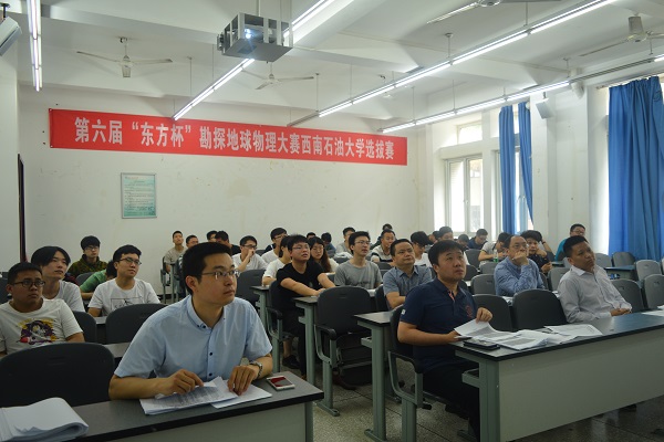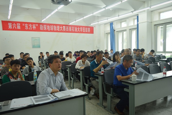 5月13日,由国际勘探地球物理学家(SEG)、中国石油学会石油物探专业委员会、东方地球物理公司和中国石油大学(北京)共同主办的第五届“东方杯”全国大学生勘探地球物理大赛西南石油大学分赛区初赛在明辨楼C107、C108两个教室同时进行。尹成、徐峰、刘文革、潘树林、唐静、刘福烈、张固澜、胡叶正、罗仁泽、吴勇出席本次比赛并担任评委,另外共计6支研究生队伍、50支本科生队伍参加本次初赛。