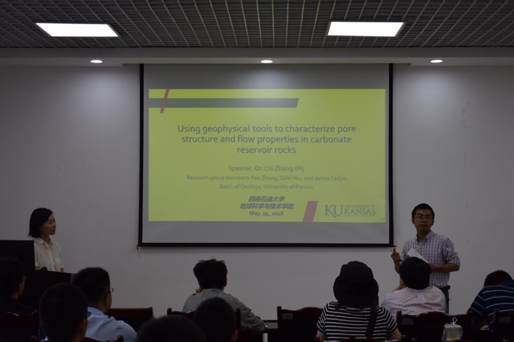 2018年5月26号,我校盛情邀请美国堪萨斯大学张弛博士于明辨楼D404作题为《Using geophysical tools to characterize pore structure and flow properties in carbonate reservoir rocks》学术讲座。该讲座由我校优秀青年教师主持人陈雷老师主持。