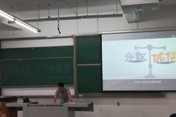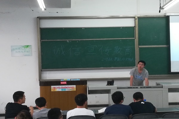 5月29日星期二下午,2015级资源勘查工程水文地质班级全体学生齐聚明辨楼C503,在班长冯磊的组织下举行了以“诚信宣传教育”为主题的班会。