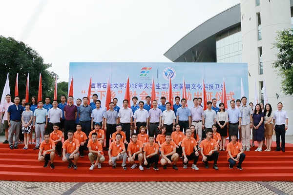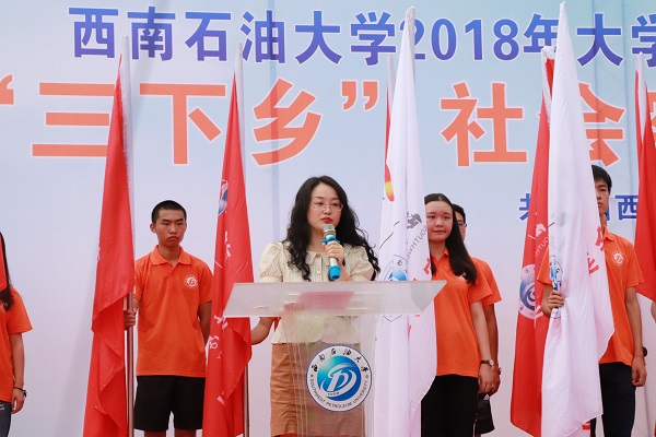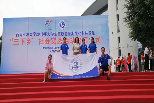 6月29日下午,西南石油大学2018年大学生志愿者暑期文化科技卫生“三下乡”社会实践活动出征仪式在博学广场隆重举行。在集合了各院实践队和指导老师后,仪式正式开始。