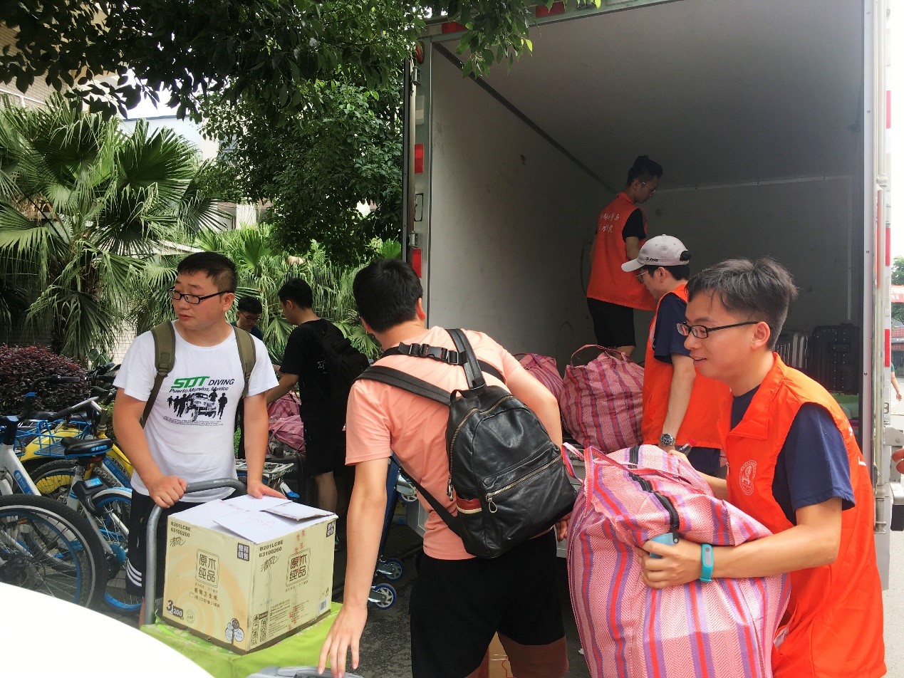 本次搬迁主要是针对2017级的研究生从成都医学院搬回本校,男生搬回20栋,女生搬回22栋。为了按时按质的完成此次宿舍搬迁活动,2017级的研究生们在范起东书记和王静萍老师的带领下,充分发扬了互帮互助的精神,同心协力完成了这项搬迁工作。在此次搬迁活动中,男生们响应学院号召,先帮助女生搬运完行李,并送到寝室门口才开始搬运自己的行李,体现了绅士风度和浓浓的同学情。虽然同学们个个都汗流浃背,筋疲力尽,却没有放弃,依然与堆积如山的行李做着“斗争”,不断重复提着沉重的行李从医学院三楼到一楼,又从西石油一楼提到五楼的动作。同时,院研究生会也组织了志愿者为大家服务并给每一位同学寝室发放一瓶矿泉水,解决宿舍搬迁过程中的用水问题,为同学们看管行李,帮助激活校园卡,并且张贴了横幅欢迎地科学子回归本校-“风雨路途一整载,地科学子归家来”。