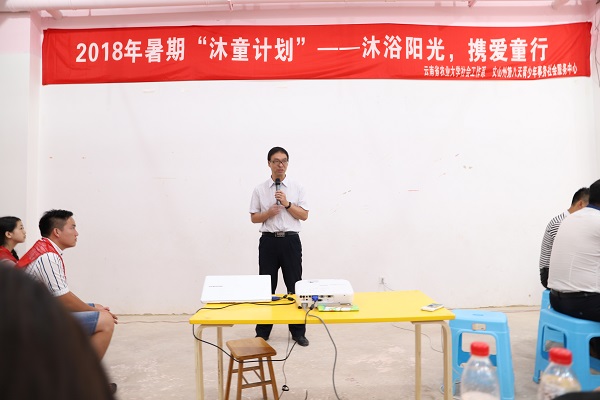 2018年7月15日上午,“2018年暑期‘沐童计划’---沐浴阳光,携爱同行”启动仪式在文山市里布嘎社区儿童之家举办。上海市浦东新区社会工作协会、云南省农业大学社会工作系、文山州民政局等相关部门领导、里布嘎社区相关领导、西南石油大学柚约云梦暑期社会实践队以及来自全国各地的60名大学生志愿者参加本次启动仪式。此次活动由文山州民政局主办,文山州第八天青少年事务社会服务中心承办。
