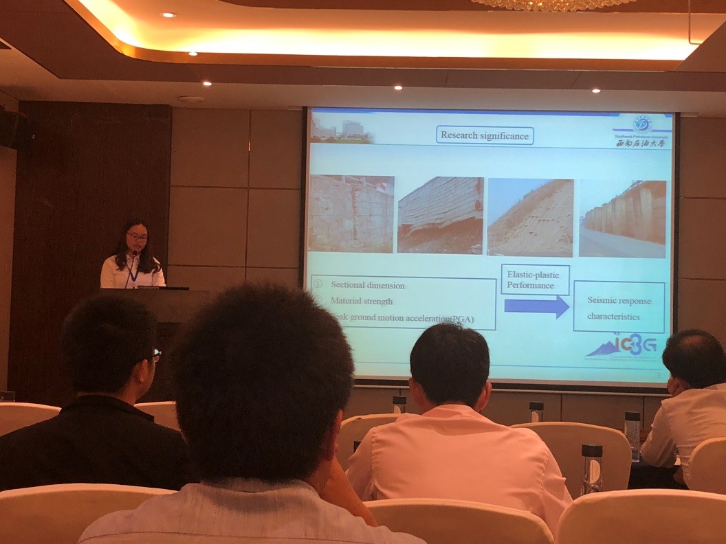 我院研究生刘懿、胡立鹏、刘颖和刘磊同学经导师曲宏略悉心指导,所著论文均被会议选中。刘懿、刘颖同学分别做了2个分会场的英文报告,胡立鹏和刘磊展示了英文展板。内容均立足于在校的科研成果,对管-土动力相互作用、抗滑桩的弹塑性响应、基于能量法的填料压实方案等内容进行了详细阐述,并与现场的专家和学者进行了交流互动,给在场观众留下了深刻的印象。