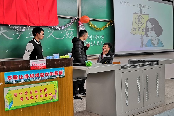 团会伊始,法学院17 级学生李金津开展了一场关于防艾的演讲。在此次的宣讲中,同学们积极回答问题,并发表自己的观点,她提到,在不熟悉周边环境时尽量减少夜出,大家也通过宣讲人细致入微的讲解,有了更深的认识。随后,同学们认真观看了防艾视频,更形象的了解防艾知识。其后,地空二班的部分同学给大家表演了舞台剧《防艾行动》,他们诙谐幽默的表演使"防艾行动"深入人心。然后王浩帆等同学给大家带来了诗朗诵《爱和希望》,他们深情的朗诵,表达了预防艾滋病的决心以及对于艾滋病患者的关爱。随后,地空一班的部分同学演唱了《Over The Rainbow》,从他们的歌声中,表达了对于美好明天的期望。团会后期,地空一班的同学表演的小品《百病门诊》一度将此次团会推向了高潮,他们有趣的表演不仅提升了大家对于此次团会的兴趣,还将防艾的知识融于表演之中。最后,主持人回归防艾主题,团会圆满落下帷幕。