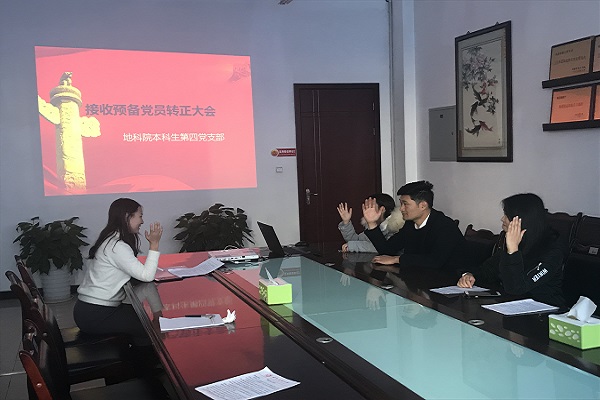 据资料,地科院本科生第四党支部由地科院2016级本科生组成,共有党员19名,其中正式党员11名(包括本次会议转正的正式党员),预备党员8名。(图/文 齐秀龙 陈林捷)
