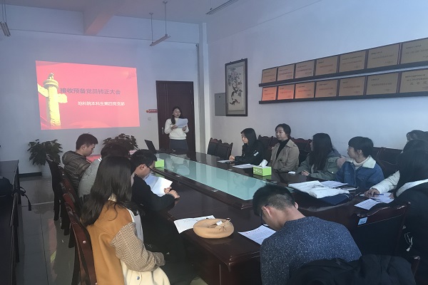 支部书记周雅倩表示,今天我支部转正了10名优秀同志,为中国共产党注入了新生的血液。但是,入党不是终点,而是一个新的起点。希望所有党员同志以更加饱满的激情和积极性,在未来的学习生活中,恪尽职守,尽职尽责,以优秀共产党员的标准来严格要求自己,真正做到为人民服务。