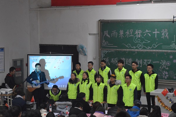 活动伊始,由18级同学表演了舞台剧《百年校庆,我们回来了》,舞台剧立足于我校甲子周年的历史节点上,表演过程流畅自然,人物塑造生动形象,赢得观众一致好评。随后,由17级张笑天与周睿表演了相声《我们的未来不是梦》,他们就现阶段的大学生活,解答同学们对现在和未来的迷惑。之后,同学们观看了来自西南石大校友们 “石大心生”的采访视频,深有感触。其后的有奖竞答环节,同学们积极参与,深谙我校校史的三位同学最终获得奖品。之后18级同学带来了朗诵《逐梦西柚》和合唱《我相信》,朗诵铿锵有力,合唱声乐优美。