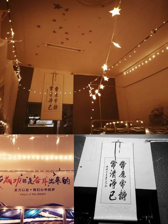 2018年12月,生活部开展了“宿舍映像”最美寝室征集活动。本次活动本着增进同学彼此间的了解、深化相互的友谊,进一步融洽学校氛围为首要,展示自己的风格为目的。优秀的石大学子细心装扮自己“心爱的小窝”,通过书画或照片的形式,反映我校学子积极向上的精神风貌,生动体现宿舍同学的日常生活和学习状况。为我们树立了一个良好的榜样。