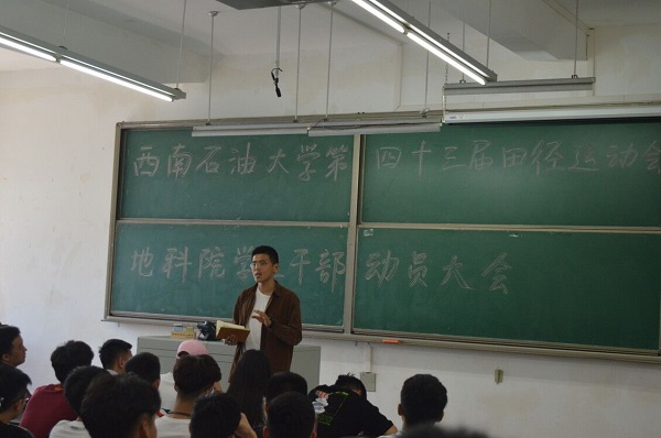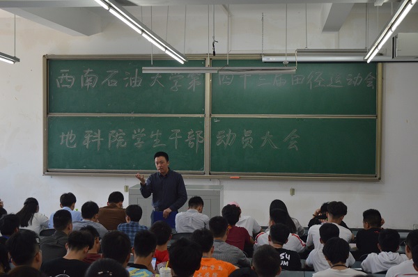 4月9日中午1点,地科院第四十三届田径运动会动员大会在明辨楼C203顺利召开,学院党委副书记范起东老师与15级辅导员李民老师出席本次会议,地科院学生会主席部长、各班班长文体委员、各运动员参加了本次大会。