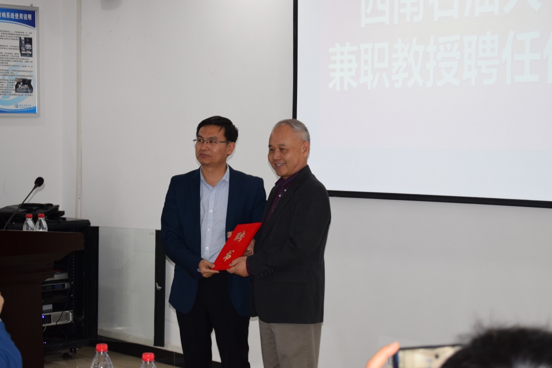 2019年04月11日,由天然气地质四川省重点实验室、地球科学与技术学院和西南石油大学科研处主办的地学专家讲坛第89-90期暨兼职教授聘任仪式在我校明辨楼D404顺利举行。地球科学与技术学院副院长赵晓明主持了本次讲坛及聘任仪式,主讲人分别为中石油吉林油田、冀东油田特聘专家凌云博士和Forland地球物理服务公司(FGS)朱宪怀博士,到场交流的还有周路、尹成教授以及多位专家学者,地科院的研究生们踊跃参加,会议现场座无虚席。