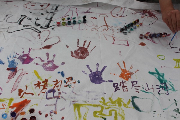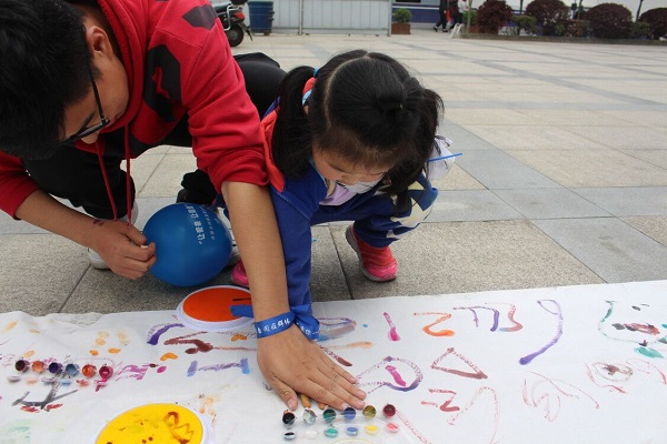 为保证活动的顺利进行,4月11日下午13:00知源爱心协会的干部及参加活动的志愿者提前来到新都区残联,并做好了充分的准备,给小朋友准备颜料、画笔、气球、饼干等各种玩具和食物。随后,家长和老师带着小孩子们来到了我们的活动场地进行互动,刚接触到志愿者的小孩子对陌生人有很大的抵触心理,有的甚至哭了起来,但随着时间悄悄流逝,渐渐地,他们接受了志愿者的善意,大家一起拍气球、在石头和画布上作画,气氛十分愉快。