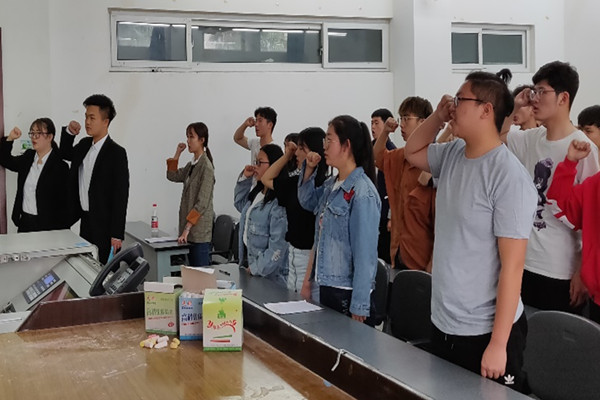 2019年4月18日星期四,勘查18级全体同学在明辨楼c108举行了2019年上学期第一次团会,本次团会由张宇翔和牛立轩主持。
