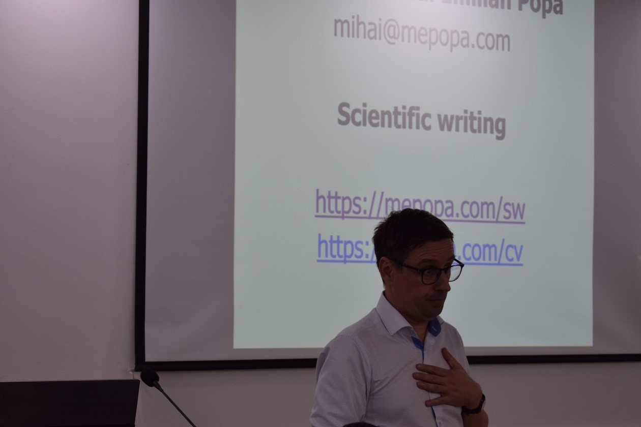 2019年5月9-10日19:00-21:00时,由天然气地质四川省重点实验室、地球科学与技术学院和西南石油大学科研处联合主办的“研究生科技论文写作系列讲座”在明辨楼D404顺利召开。应邀主讲人为国际古植物协会副主席,布加勒斯特大学(University of Bucharest)Mihai Emilian POPA教授,地科院师生积极参加学习科技论文写作相关知识。
