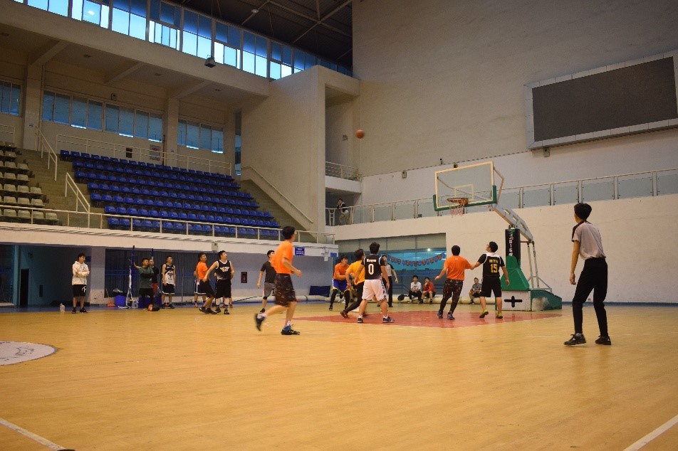 首先进行的是王兴志+代宗仰科研团队对战张伯虎+朱大鹏科研团队的比赛,比赛过程中,王兴志团队一开场就取得了巨大的优势,以15:2力压对方,但张伯虎团队并没有放弃,半场结束两边分差逐渐拉平 。中场休息时,两队的女生进行了投篮加分环节,双方“女选手”也一定程度上为队伍获得了分数。最终,王兴志+代宗仰团队以48:40获得本场比赛的胜利,获得此次决赛的第三名。随后,令人紧张而又激烈的冠亚军争夺赛开始,参加决赛的队伍分别是唐洪+戴鸿鸣科研团队和尹成+蒋裕强科研团队,刚开始,两队比分差距始终很小,但随着双方体力的消耗,唐洪+戴鸿鸣团队的选手们明显占据着忍耐力上的优势,最终,唐洪+戴鸿鸣团队以43:39的分数险胜,成为此次“师生杯”的冠军获得者。