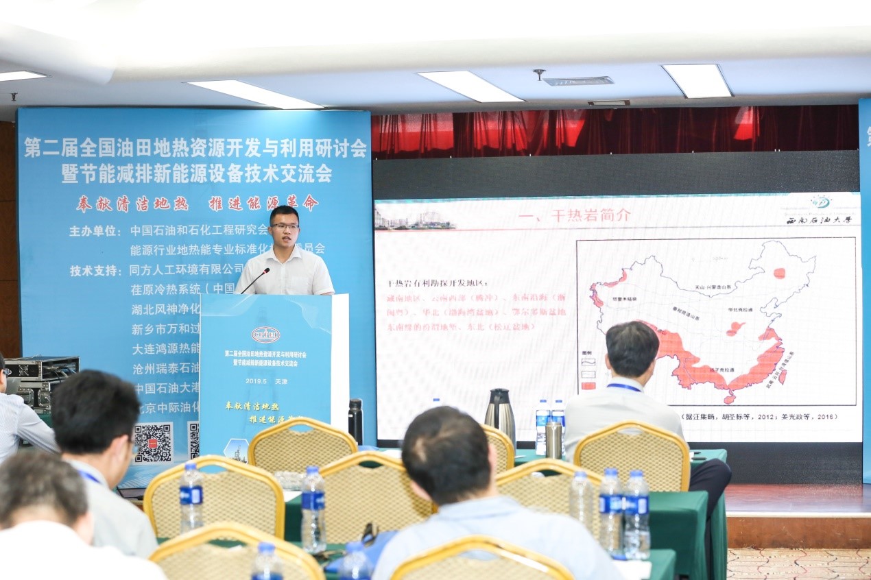 2019年5月28日,第二届全国地热资源开发与利用研讨会暨节能减排新能源设备技术交流会在天津远洋宾馆召开。在历时三天的会议中,中科院汪集暘院士、工程院院士李根生等多位专家教授集体亮相会场。我校地球科学与技术学院的冷文祥同学也获邀参加了此次大会,并在会上做出了关于干热岩热传导理论的分享。