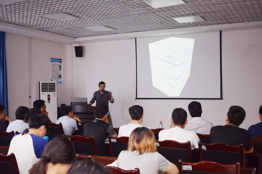 会议伊始,Nicola Scarselli教授作了简单的自我介绍,他表示很高兴能在西南石油大学进行学术讲座。随后,Nicola Scarselli就“从巨型滑动到块体流动:大陆边缘重力变形构造的地震分析”这一主题进行了精彩的报告,结合实例进行了大陆边缘重力变形构造的地震分析。讲座结束后,Nicola Scarselli悉心回答了与会师生的疑问,并与参会师生进行了深入的交流与讨论。