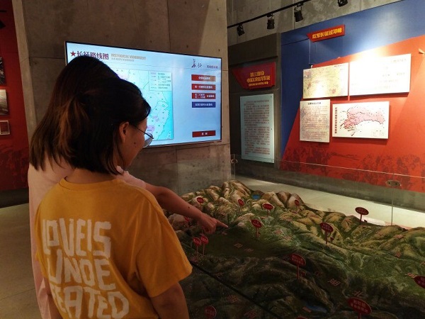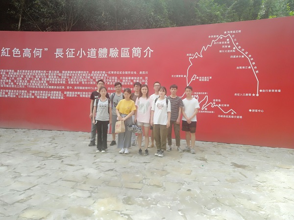 在通往纪念馆的长征大道上,随处可见的红色遗迹以及人们为纪念红军所修建的建筑入目不暇接。经过一个多小时的烈日下的步行,队员们对经历过长征的红军更加敬佩,心中向红军精神自觉靠拢。