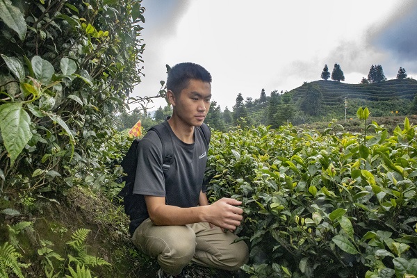 为了更加深入了解双峰村的状况,我们上午和工作人员前往了生态茶园。期间道路十分陡峭,到达时,我们已经汗流浃背。茶园在当地的山顶,视野及其良好,甚至能够看到屏山县和岷江。中午当地村民热情招待了我们,在其他地方很难感受到这份质朴。